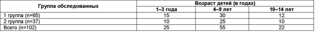 Возраст пациентов во всех группах был от 1 года до 14 лет (табл. 1). Деление по полу и возрасту в обеих группах было относительно эквивалентным.