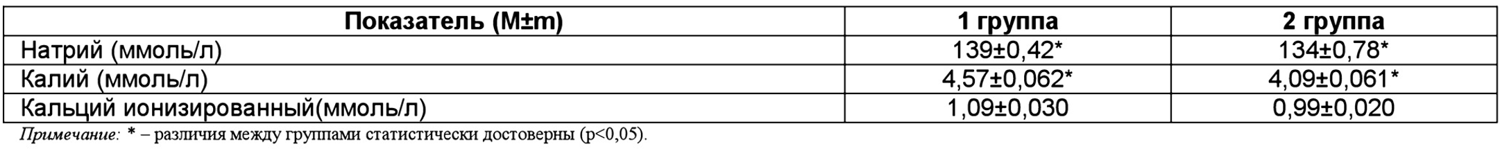 Как видно из данных таблицы 3 и рисунка 6, показатели электролитного обмена и гематокрита в процессе лечения у всех обследованных имели тенденцию к нормализации. Однако к 5 дню терапии эта позитивная динамика более четко прослеживается у пациентов 1 группы по сравнению со 2 группой.