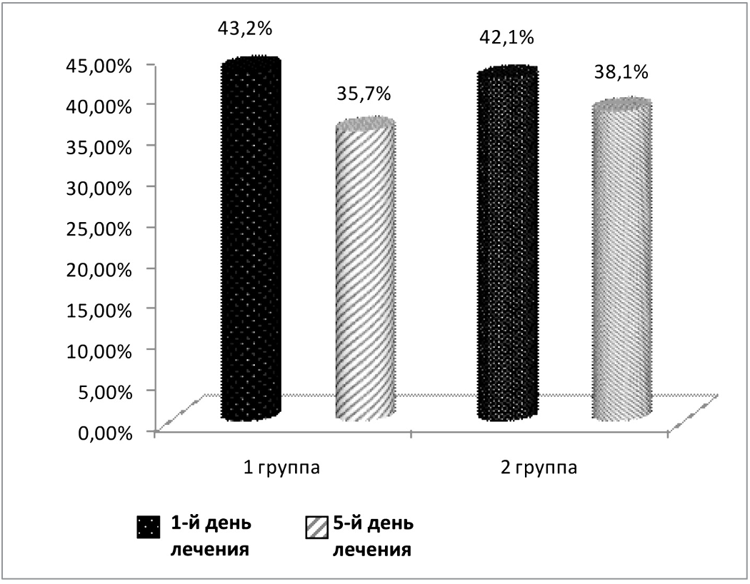 Динамика основных клинических симптомов в процессе лечения (в частности к 5 дню терапии) представлена на рисунке 5.