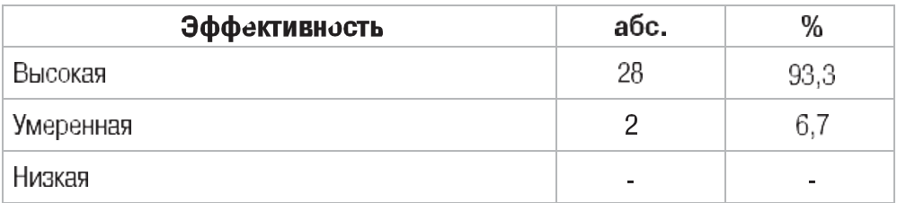 При микробиологическом исследовании кала основной группы (15 человек) после проведенного лечения была отмечена стойкая тенденция в нормализации основных показателей биоты кишечника. Так, дисбактериоз I степени был выявлен у 2 (13,3 %), II степени – у 6 (40,0 %), III степени – 2 (13,3 %) обследованных (до лечения 10,0 %, 53,3 % и 36,7 % соответственно); у 5 человек (33,3 %) на фоне проводимой терапии отмечалась полная нормализация всех показателей. Также у пациентов данной группы отмечалась нормализация содержания лакто- и бифидобактерий – 14 человек (93,3 %), у всех 15 пациентов восстановилось общее количество типичных кишечных палочек при полном отсутствии гемолизирующих кокков и условно-патогенных форм энтеробактерий. Также после проведенной комплексной терапии наблюдалось снижение показателей обсемененности грибами рода Candida с 73,7 % до 26,7 %.