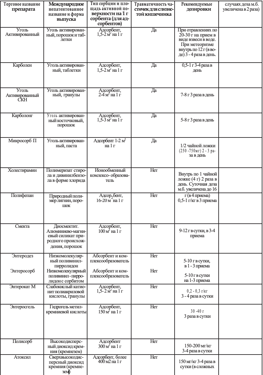 Сравнение энтеросорбентов, обычно применяющихся в практическом здравоохранении Украины (В.Н. Нагорная, 2005)