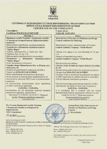 | Производственный комплекс компании Орисил-Фарм систематически проходит инспектирование Государственной службы по лекарственным средствам. В результате последнего инспектирования, мы получили Сертификат соответствия условий производства требованиям GMP.